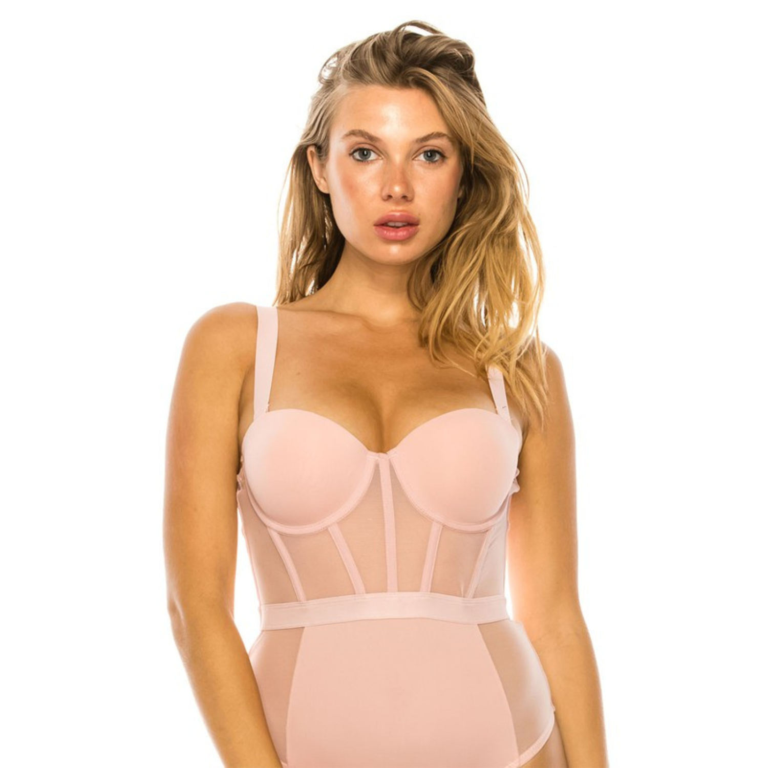Body de Lencería Rosa Pastel con Varilla y Transparencias – Ropa Interior Sexy para Mujer